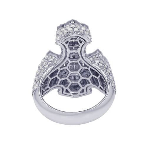 • A: The Baguette Cross Diamond Pinky Ring features a total carat weight of 4.8 carats.