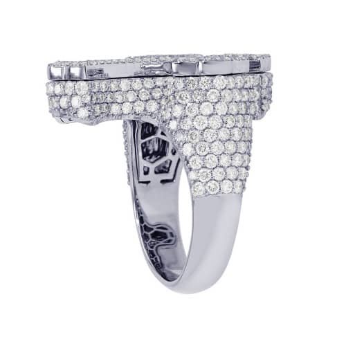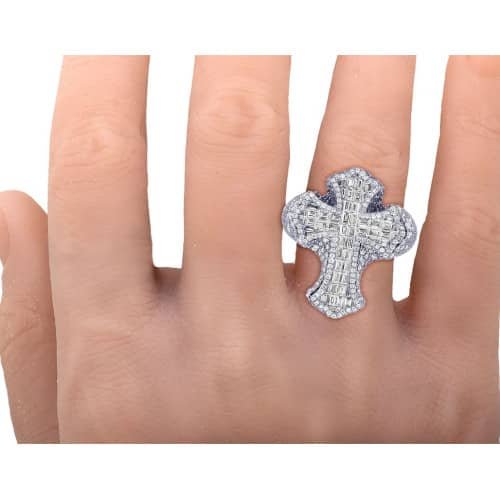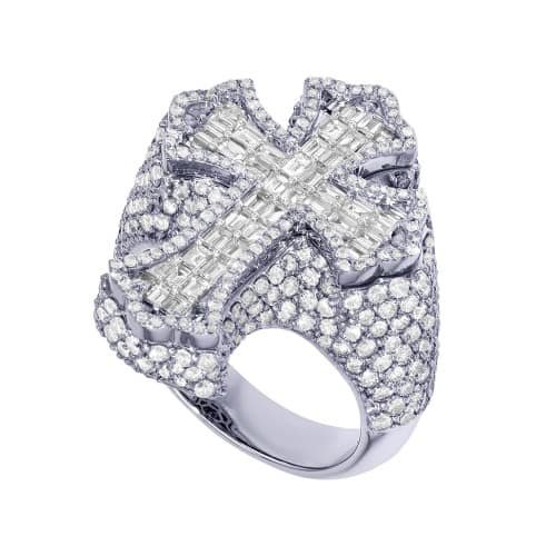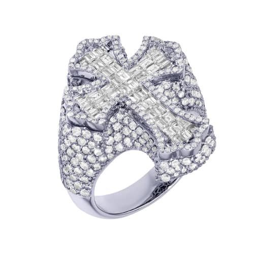 Baguette Cross 4.8CT Diamond Pinky Ring 14k White Gold