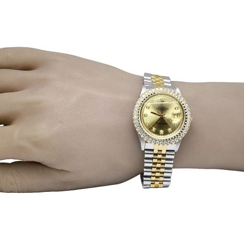 Material: Meticulously designed, the 36MM case and bracelet showcase a combination of 18K yellow gold and steel, providing a perfect canvas for the classic Champagne Dial and a subtle 3.0 Ct of diamond embellishments.