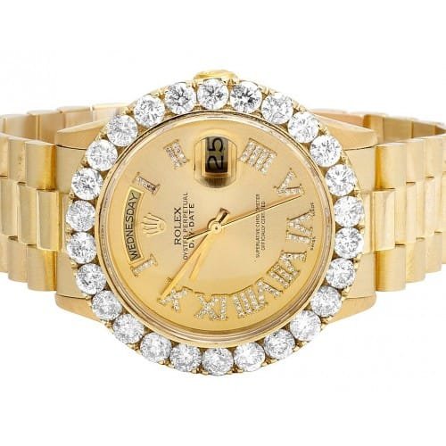 Jewelry Type: The Rolex Day-Date 18k Gold Diamond Watch is a pinnacle of luxury, blending the richness of 18k gold with the brilliance of 6.75cts of diamonds.